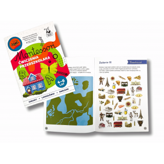 Montessori. Ćwiczenia przedszkolaka (4–6 lat) to bogato ilustrowana książka pełna zabaw i łamigłówek przygotowanych w duchu pedagogiki Montessori. Ćwiczenia dla przedszkolaków przybliżają wiedzę z kilku obszarów tematycznych, takich jak: świat roślin, świat zwierząt, kontynenty, czas i historia, tradycje i zwyczaje oraz kosmos.