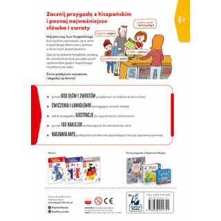 Mój pierwszy kurs hiszpańskiego. 600 słów i zwrotów – to kurs wprowadzający do języka hiszpańskiego dla dzieci od 6. roku życia. Na 64 stronach na najmłodszych czekają podstawowe słowa i zwroty z obszarów tematycznych związanych z codziennym życiem: rodzina, dom, przyjęcie urodzinowe, szkoła, hobby i wiele innych!
