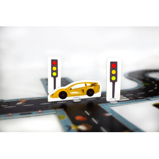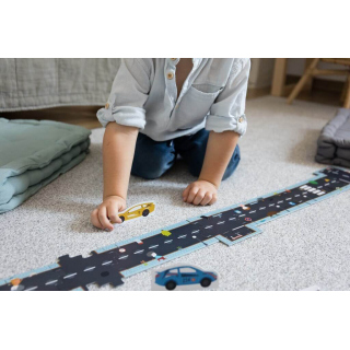 Zbuduj z puzzli wymarzoną drogę! Stwórz nawet 3-metrową trasę, zaplanuj, gdzie powstanie parking oraz stacja benzynowa, i ścigaj się do mety!