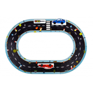 Droga. Duże puzzle z grą przypadną do gustu najmłodszym, którzy uwielbiają budować własne konstrukcje. Elementy można łączyć w dowolnej kolejności, wykorzystując wszystkie, część odcinków drogi, a nawet kilka zestawów puzzli.