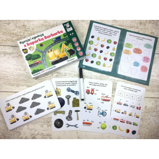 Rysuję i zgaduję z koparką Barbarką to wyjątkowy zestaw edukacyjny dla dzieci w wieku 5-6 lat, który za pomocą interesujących zagadek o pojazdach, rozwija zainteresowania i umiejętności najmłodszych podczas twórczej zabawy. Nauka liczenia, rozwój mowy i grafomotoryki, a także zwiększenie wiedzy o przyrodzie, a to wszystko w jednym zestawie 100 rozwijających zabaw dopasowanych do wieku dziecka. Podczas zabawy zostają pobudzone wszystkie sfery dziecięcej aktywności, a każde z zadań jest inne, dlatego nie ma mowy o nudzie!