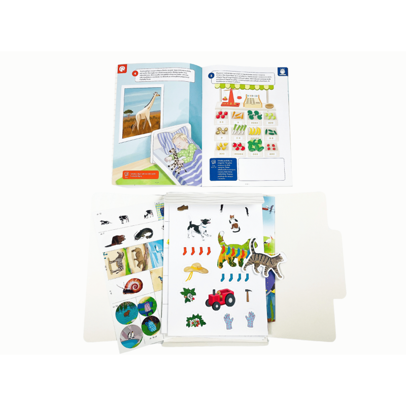Prosta fabuła i realistyczne ilustracje angażują uwagę dziecka i zachęcają do samodzielnego odkrywania świata. Teczka wspiera rozwój mowy, logicznego myślenia i motoryki małej, a różnorodne aktywności pozwalają dopasować zabawę do tempa rozwoju dziecka.