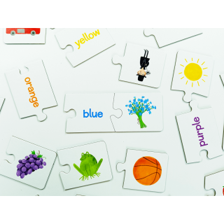 Dzięki angażującej zabawie z puzzlami maluchy poznają angielskie nazwy kolorów, a przy okazji trenują koordynację oko-ręka, spostrzegawczość i koncentrację.