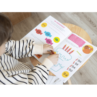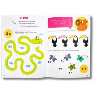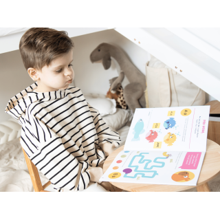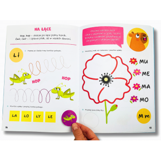 Do ćwiczeń dołączono arkusz z naklejkami, dzięki którym dzieci mogą rozwinąć sprawność grafomotoryczną.