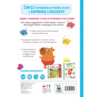 Zabawy logopedyczne. Loguś bawi się słowami. Gimnastyka języka to zeszyt z ćwiczeniami logopedycznymi opracowanymi przez specjalistkę z myślą o potrzebach rozwojowych dzieci od trzeciego roku życia. Ćwiczenia narządów mowy przedstawione w tym zeszycie usprawniają pracę aparatu artykulacyjnego, dzięki czemu dziecko będzie mogło prawidłowo realizować głoski.