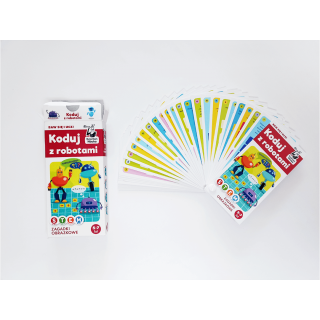 Zagadki o różnym stopniu trudności zostały oznaczone symbolami żarówek. Jedna żarówka to łatwe zadanie, dwie – trudniejsza łamigłówka, trzy żarówki to wyzwanie dla mistrzów kodowania. Na awersie umieszczono odpowiedzi, by dziecko mogło samodzielnie sprawdzić umiejętność kodowania.