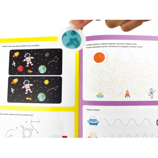 Kolorowa książka z naklejkami zawiera atrakcyjne ilustracje oraz dużo miejsca na zaznaczanie, uzupełnianie i rysowanie rozwiązań zagadek. 50 dużych naklejek sprawi, że czas spędzony z książeczką będzie jeszcze bardziej atrakcyjny.